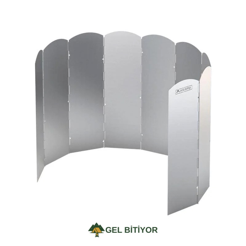 Orcamp 9 Kanat Rüzgarlık, kamp ocaklarının ve açık alanda yakılan ateşlerin rüzgardan etkilenmesini önlemek için tasarlanmış dayanıklı bir kamp ekipmanıdır.